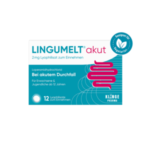 Der in LINGUMELT® akut enthaltene Wirkstoff Loperamid wird seit Jahrzehnten zur Durchfalltherapie eingesetzt. Wenn die normale Darmfunktion aus dem Gleichgewicht geraten ist und Durchfall zur Folge hat, verringert Loperamid die erhöhte Darmbewegung und stoppt so den akuten Durchfall. Die Nahrung verbleibt länger im Darm, wodurch der Körper wieder mehr Flüssigkeit, Nährstoffe und Elektrolyte aus der Nahrung aufnehmen und gleichzeitig das Risiko einer Dehydration verhindert werden kann.